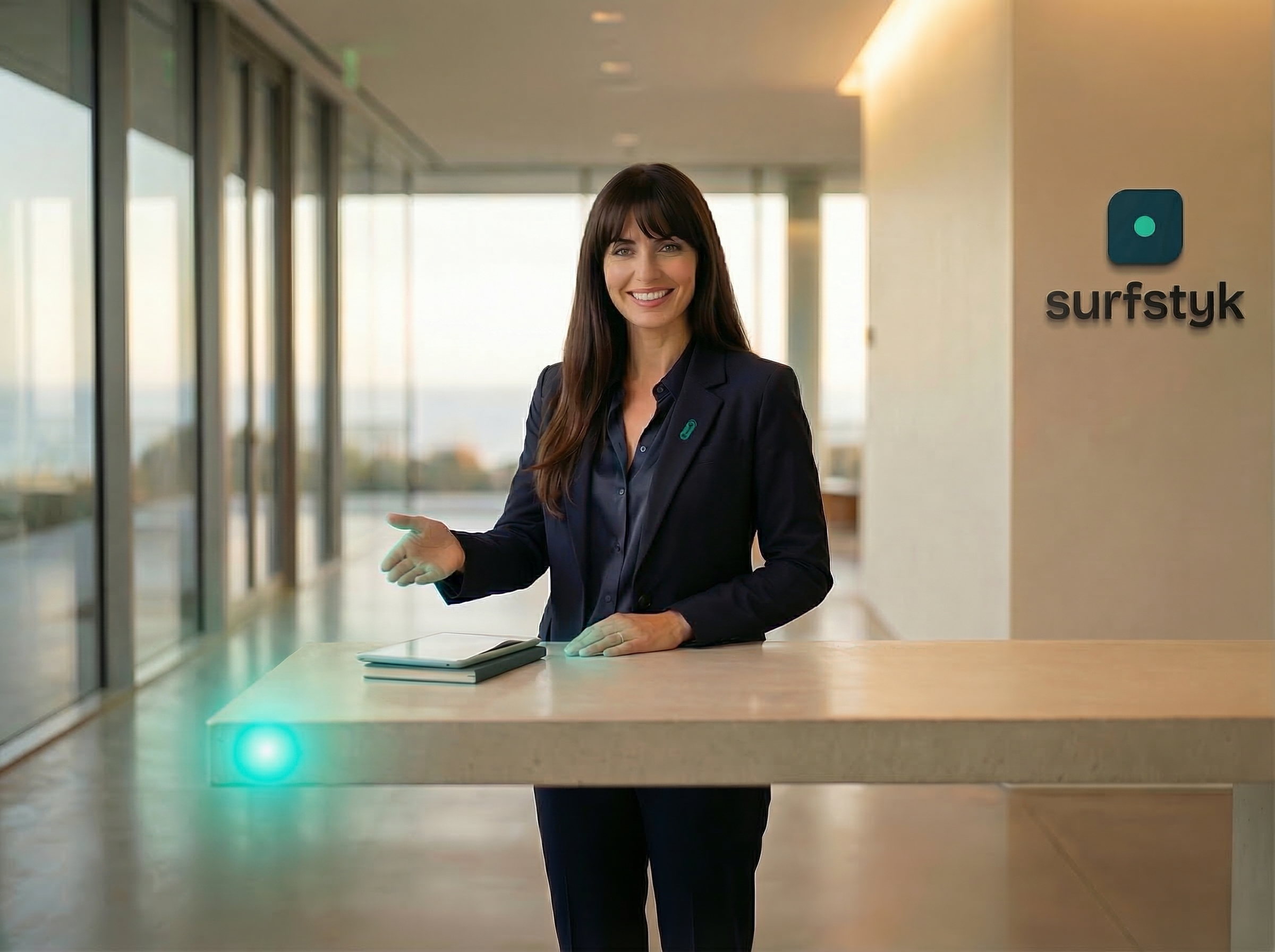 You land on surfstyk.com and you meet Justec. Not a chatbot in the corner. Not a pop-up. She is the website. “Someone’s always here. Ask me anything about what we do, how we work, or just say hello.”